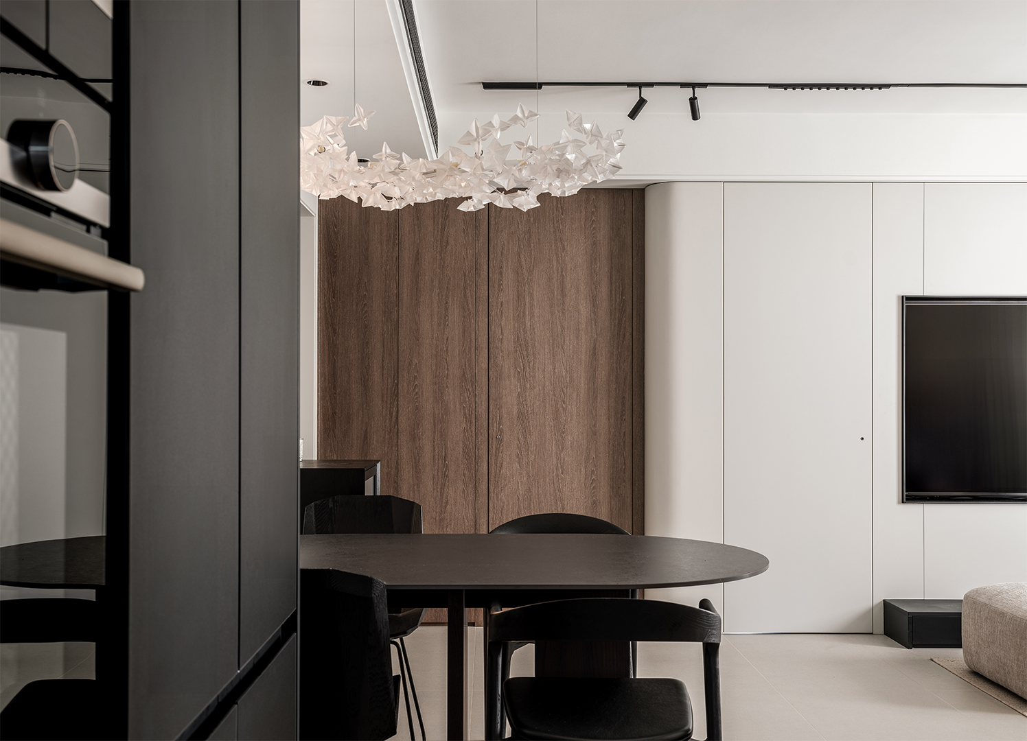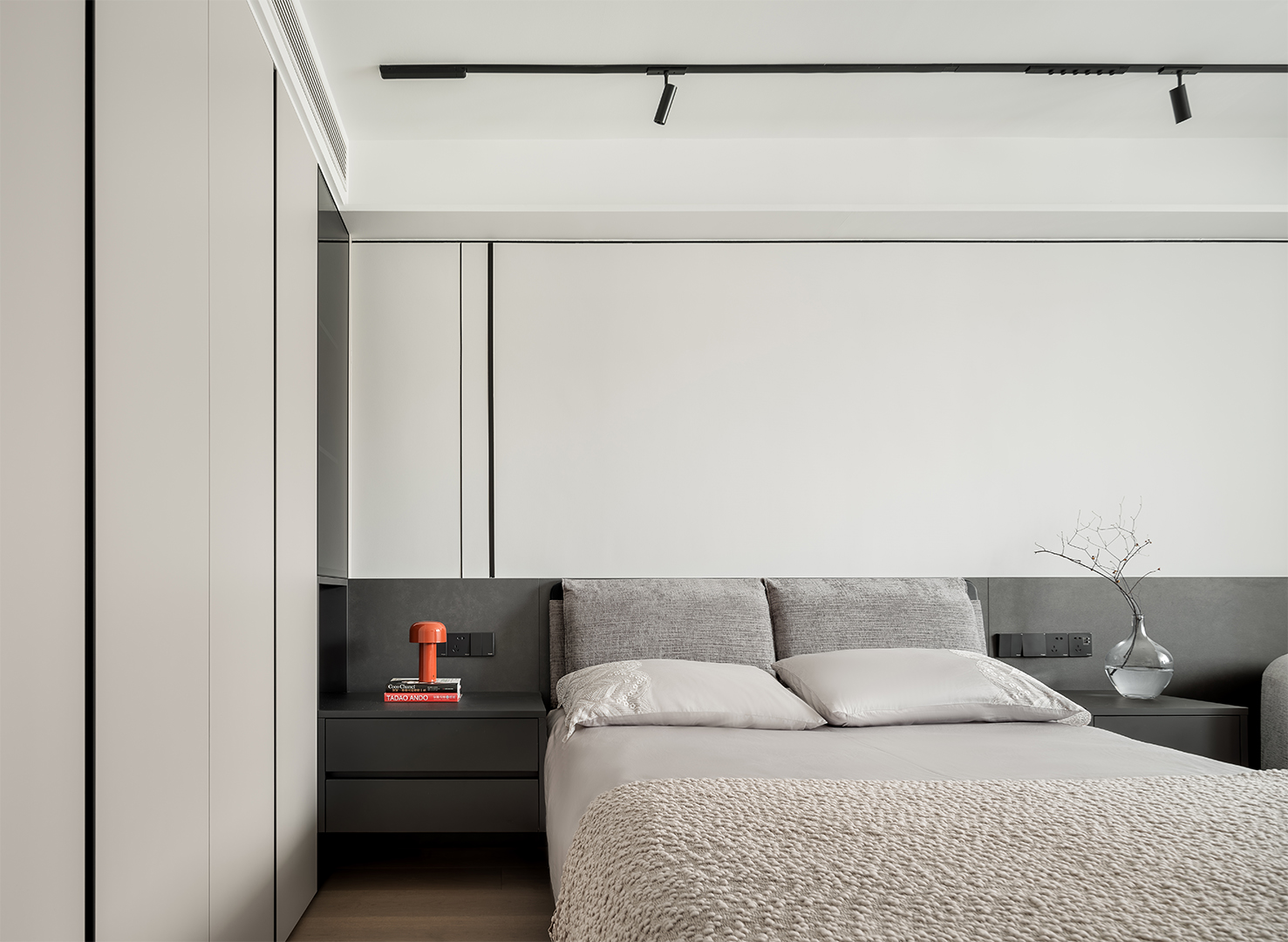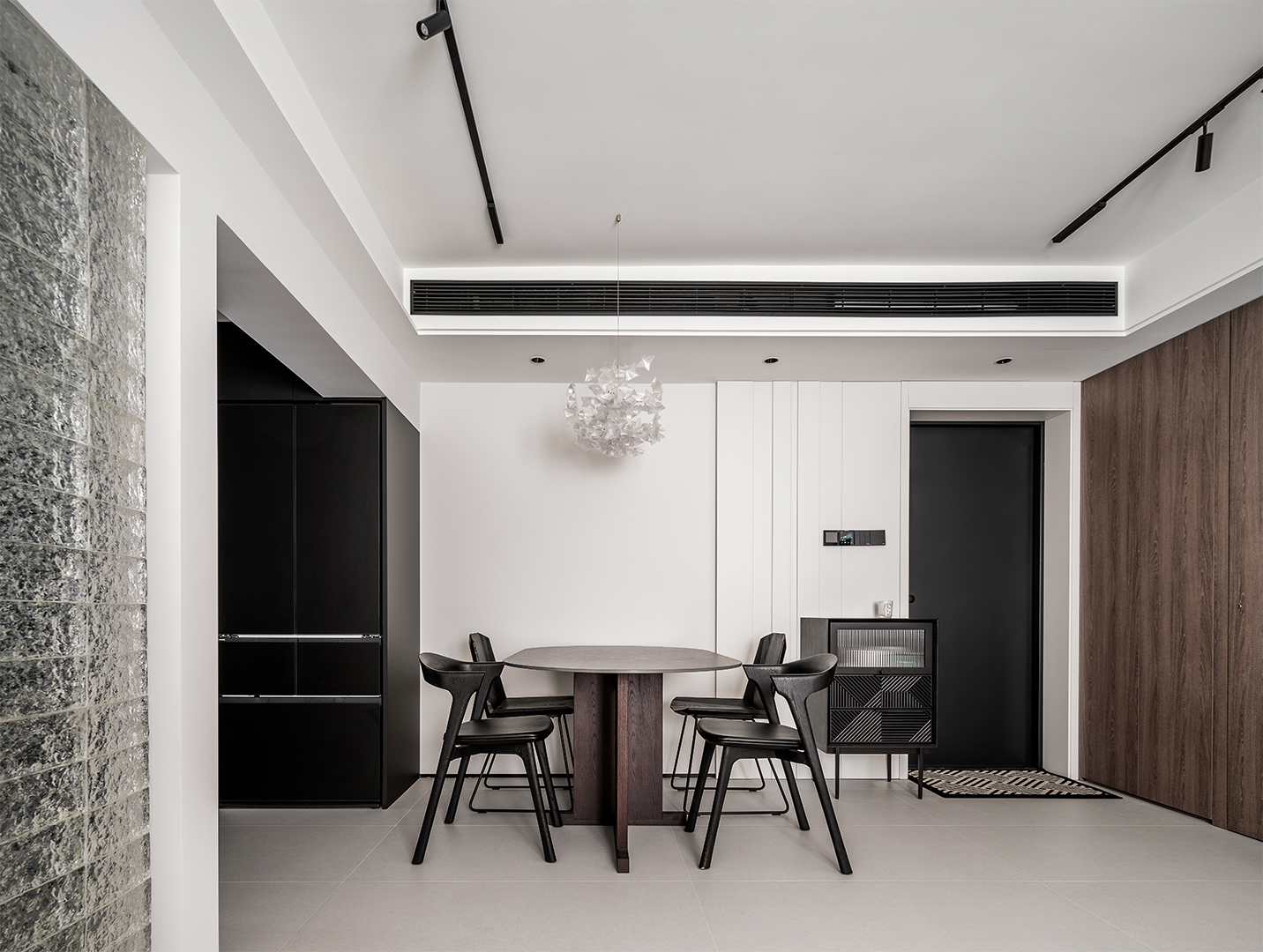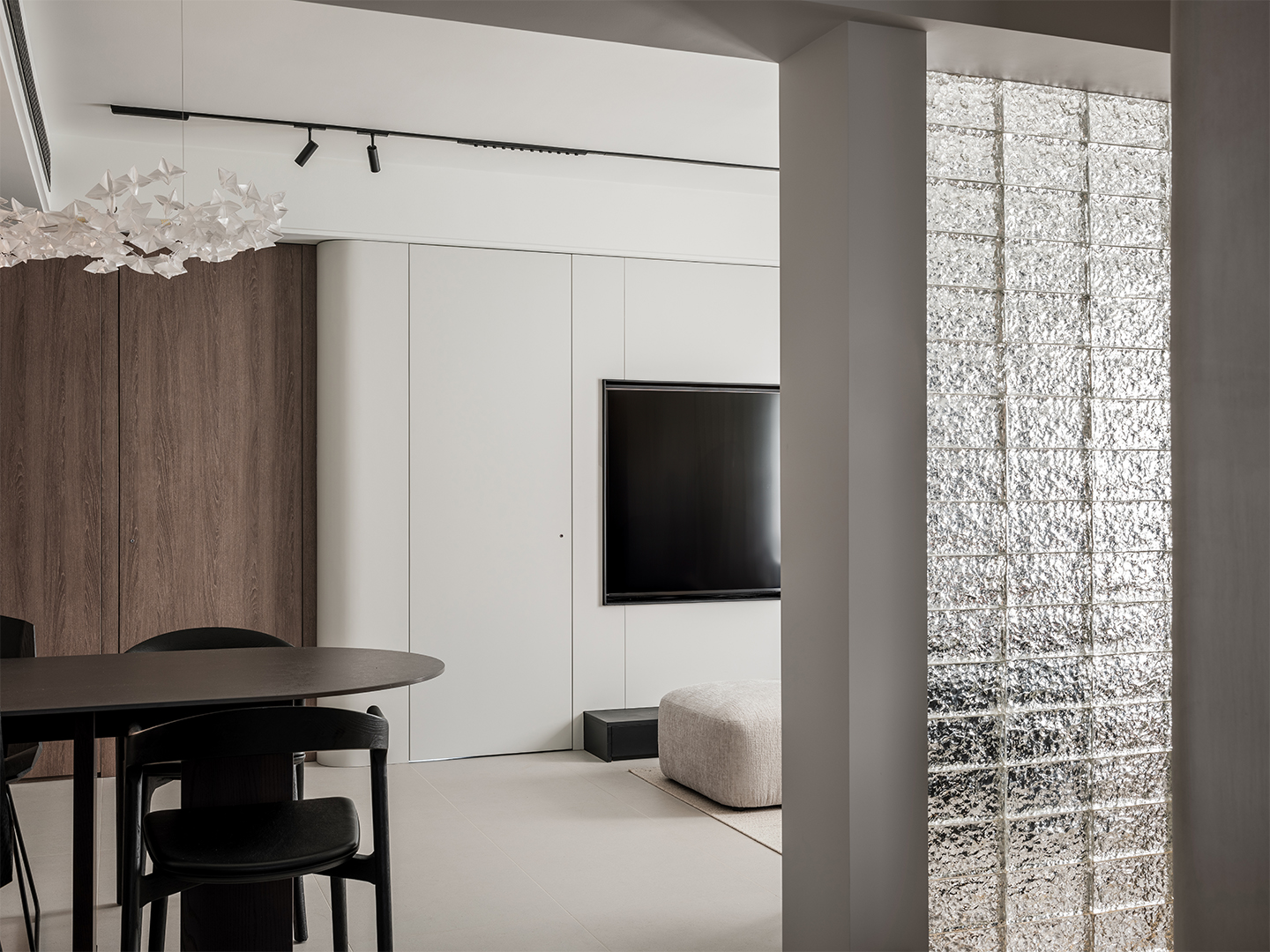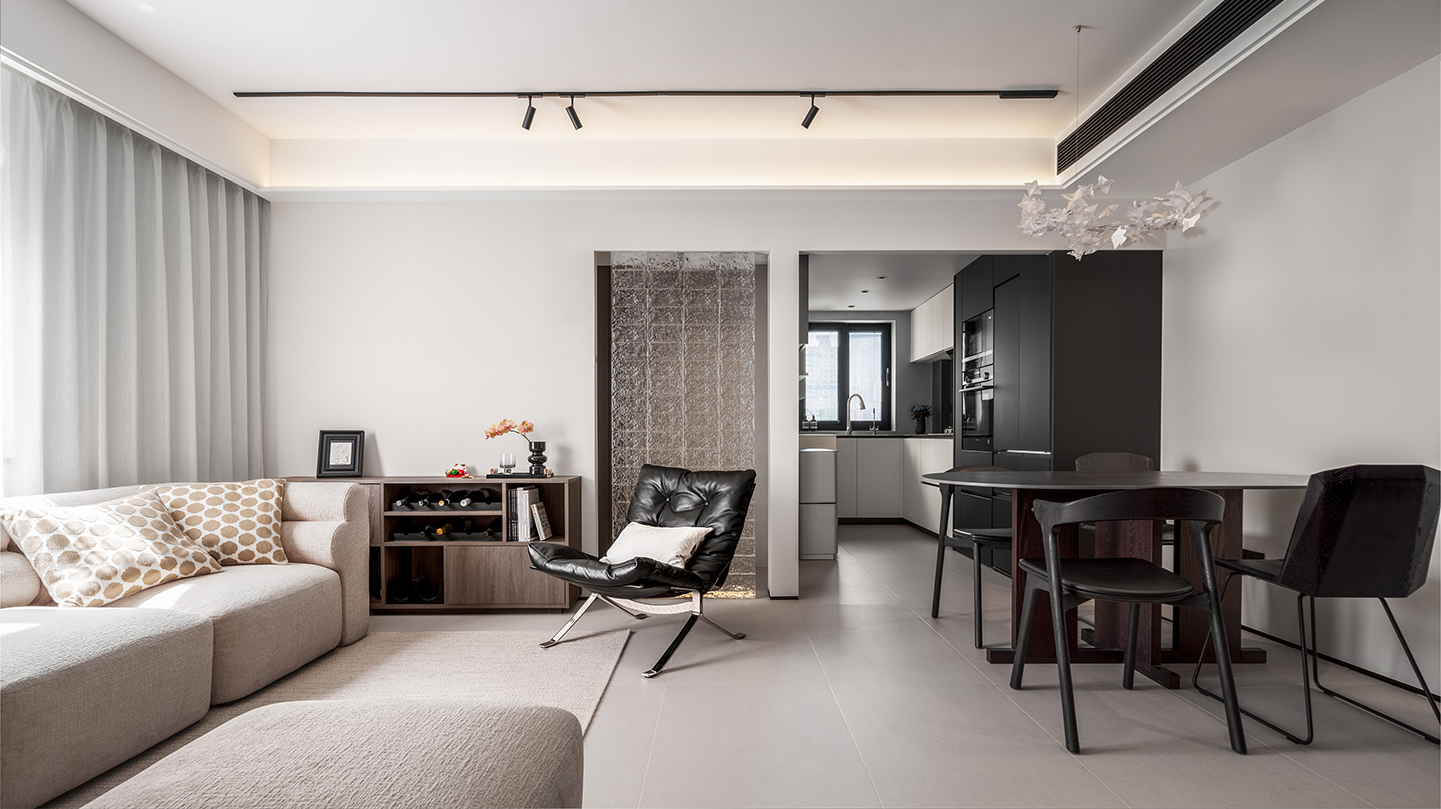 The project is located in a 70m2 two-bedroom apartment within an old residential neighborhood near the Huangpu River in Shanghai. Given the compact nature of the existing unit, the design emphasizes connectivity and openness, integrating a minimalistic design approach with soft modern elements to reflect the ordered yet refined tastes of the owners.